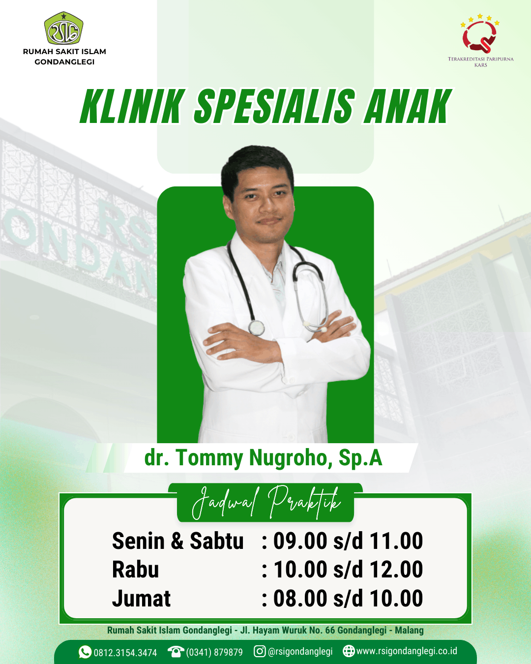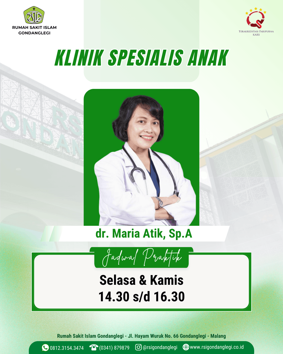 Spesialis Anak Kamis 14.30 - 16.30 WIB