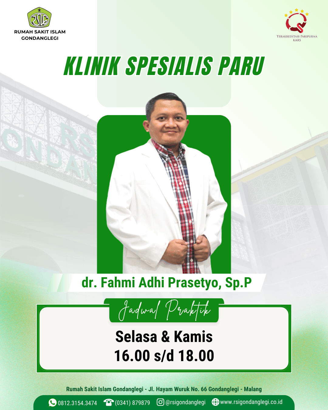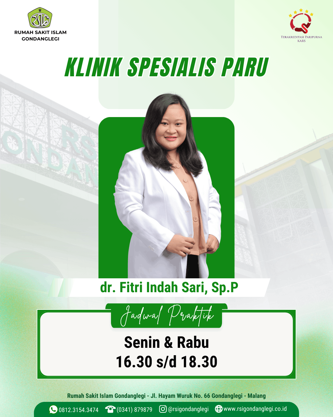 Spesialis Paru Rabu 16.30 - 18.30 WIB