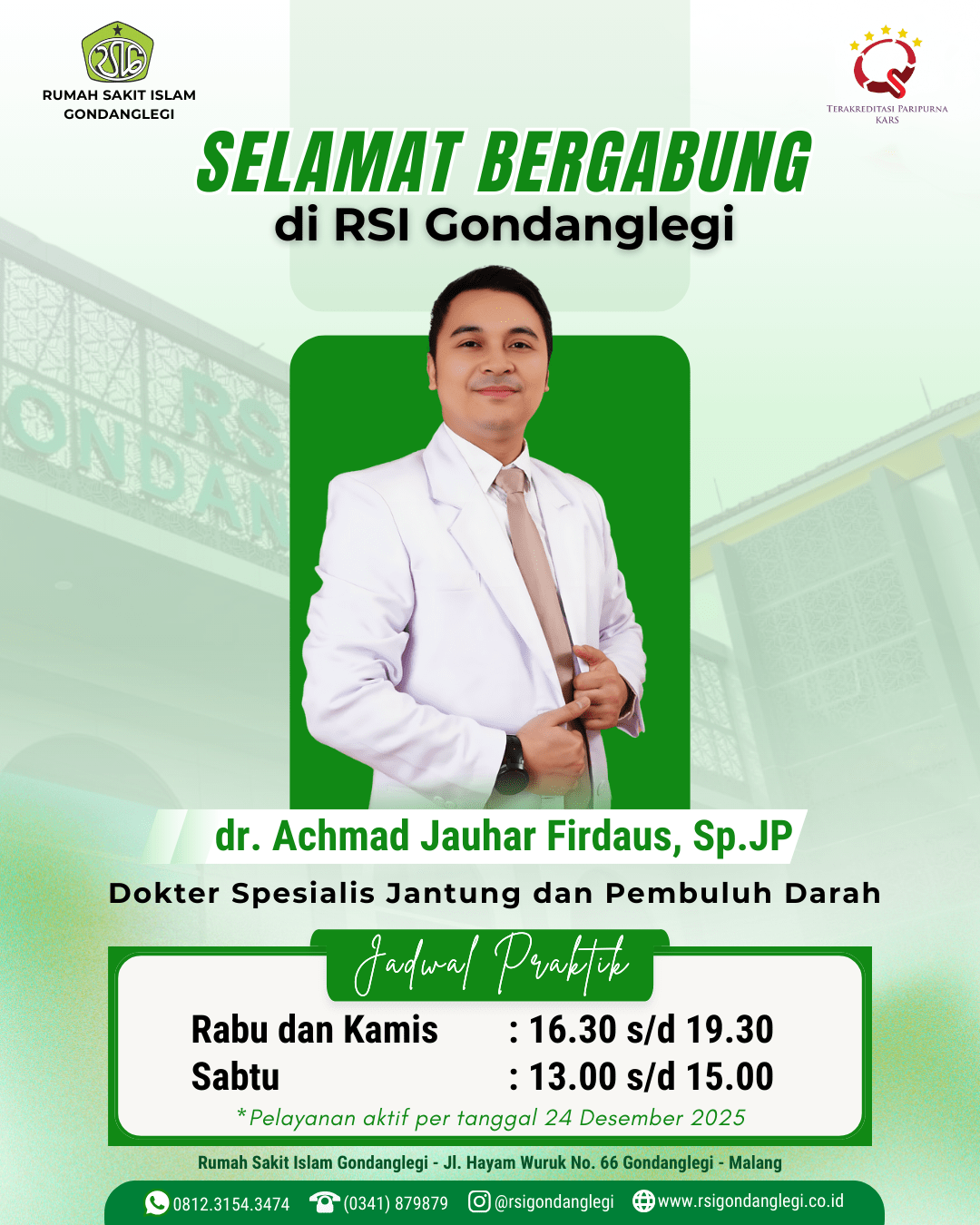 Spesialis Jantung & Pembuluh Darah Kamis 16:30 - 19:30 WIB