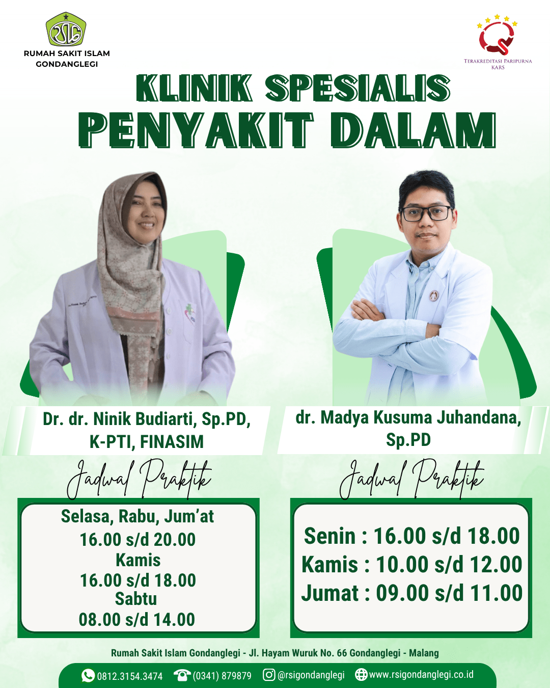 Spesialis Penyakit Dalam Rabu 16.00 - 20.00 WIB