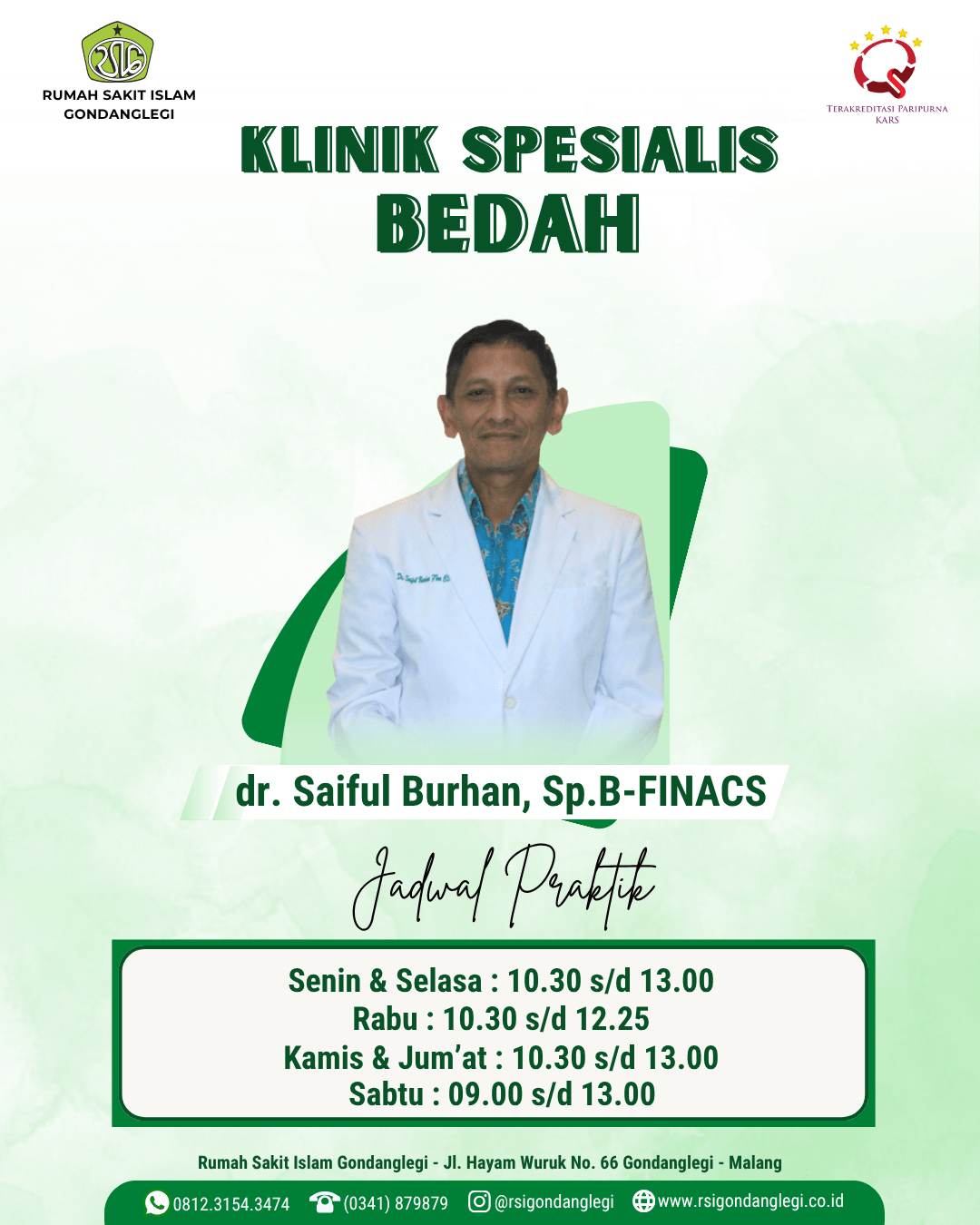 Spesialis Bedah Rabu 10.30 - 12.25 WIB